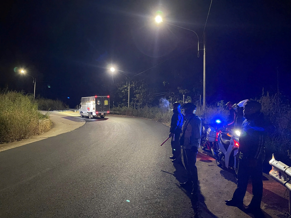 Lực lượng tuần tra tại tuyến đường tại dốc năm cây thuộc thôn 5 Thống Nhất, xã Phước Sơn