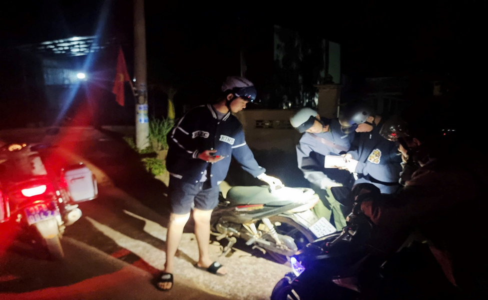 Lực lượng tuần tra dừng xe kiểm tra các trường hợp lưu thông trên đường