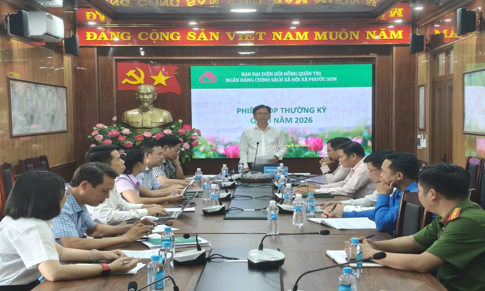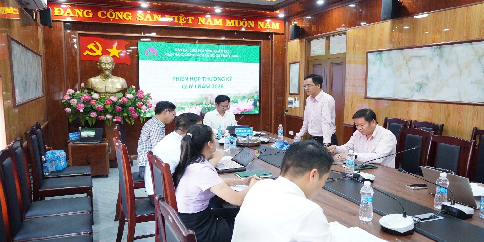 <h1>BAN ĐẠI DIỆN HĐQT NGÂN HÀNG CSXH XÃ PHƯỚC SƠN TỔ CHỨC PHIÊN HỌP THƯỜNG KỲ QUÝ I NĂM 2026</h1>